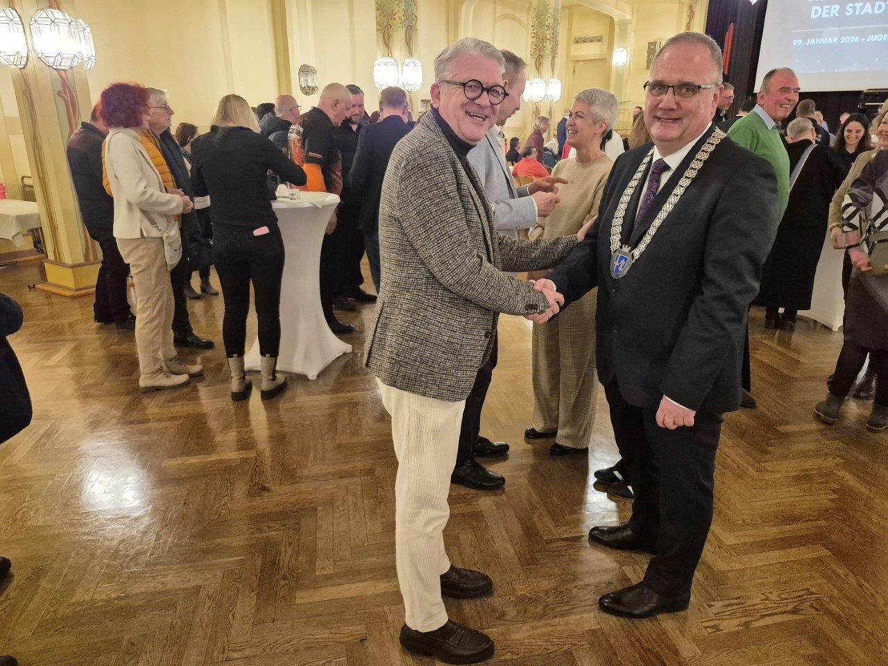 Einen „Dreiklang von Zusammenhalt, Demut und Dankbarkeit“ wünschte sich Martus gegen Ende seiner einstündigen Rede für die und in der „wunderschönen Stadt“. Die Premiere mit dem neuen Dirigenten des aufwärtsstrebenden Chors „Rheinklang“ begeisterte unüberhörbar das Publikum. Erstmals mit dem Neujahrsempfang zusammengelegt war die Ehrung von erfolgreichen 24 Sportlern und 13 Züchtern: alles deutsche Meister, Europa- oder gar Weltmeister.